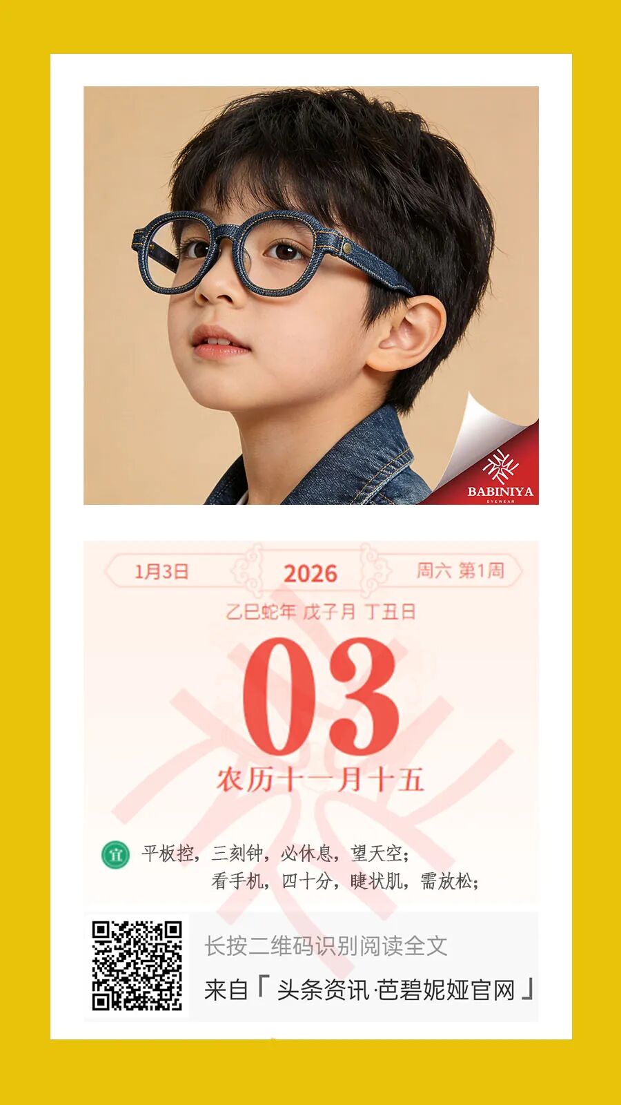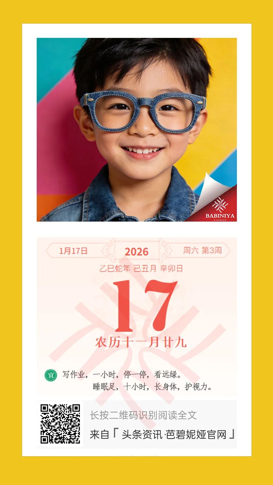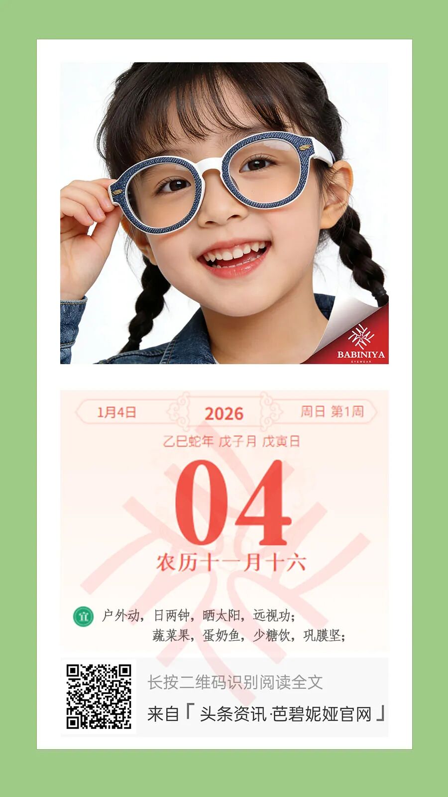 芭碧妮娅相信,真正的品牌记忆,不是logo,而是孩子某天突然对妈妈说: “今天日历告诉我,要去阳台数云,我先不刷短视频啦。” 2026,让每一天的日出,都成为视力表最清晰的那一行。