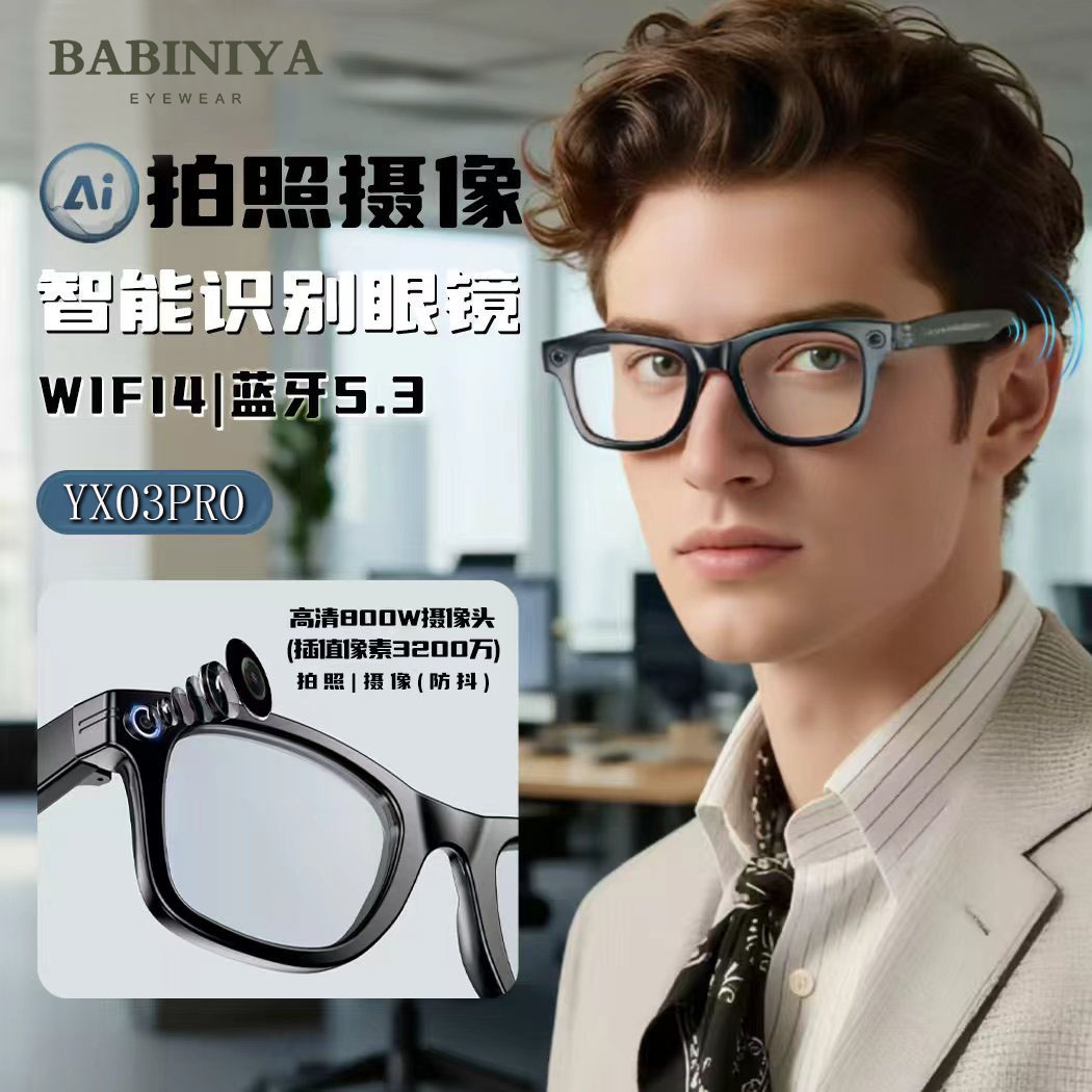 芭碧妮娅YX03PRO智能眼镜AI语音翻译800万摄像蓝牙通话听歌一体头戴科技